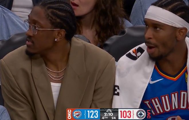 易邊再戰(zhàn),亞歷山大過掉哈登上籃得手,接著單挑巴圖姆撤步三分再投進,一人連拿7分,雷霆再次追平比分。以賽亞-喬追身自行撤步投進第4記三分,雷霆反超快船6分。